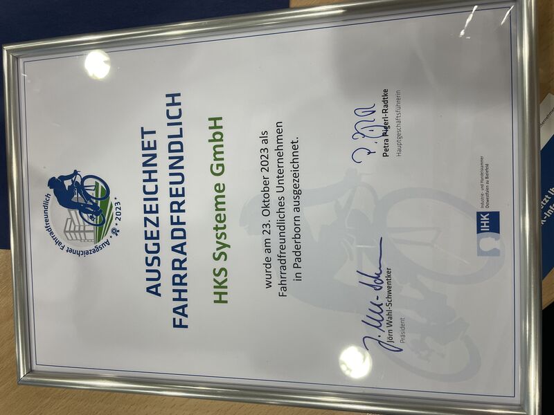 HKS als „Ausgezeichnet Fahrradfreundliches“ Unternehmen ausgezeichnet